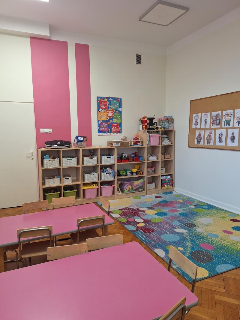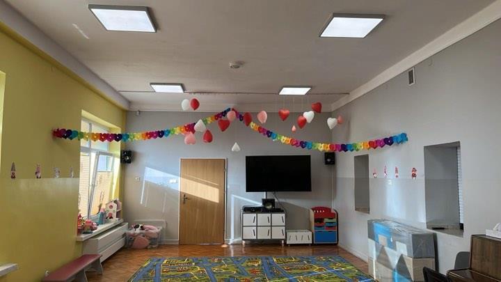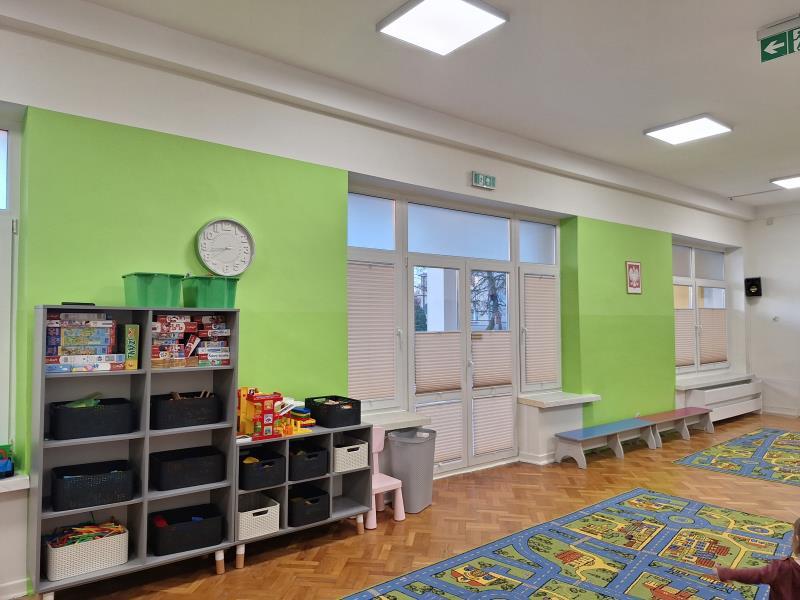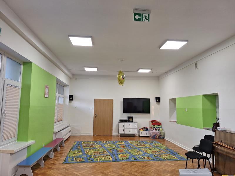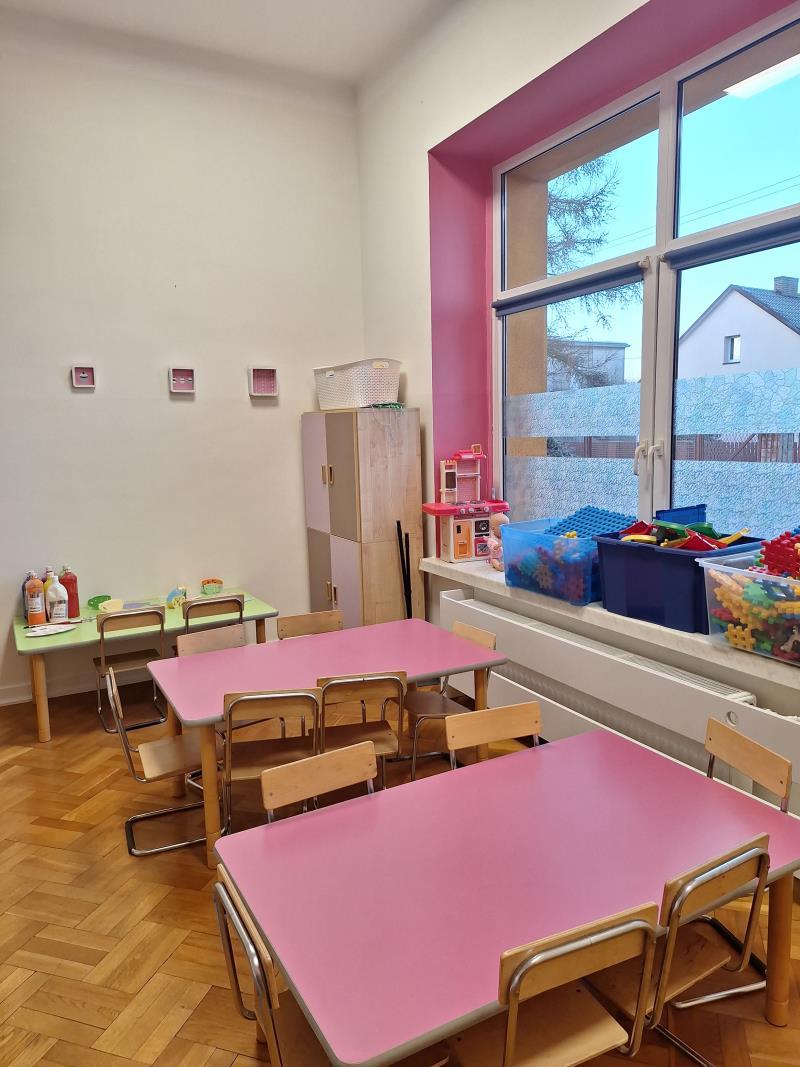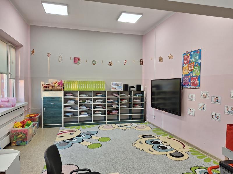 - Przedszkole dysponuje czterema odnowionymi salami, które są w pełni wyposażone w nowoczesne, funkcjonalne meble. W przedszkolu znajduje się dodatkowo duża sala, którą dzieci mogą wykorzystywać do zabawy, zajęć dydaktycznych i wydarzeń przedszkolnych.