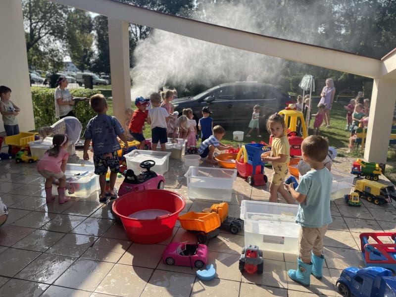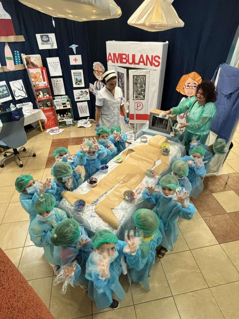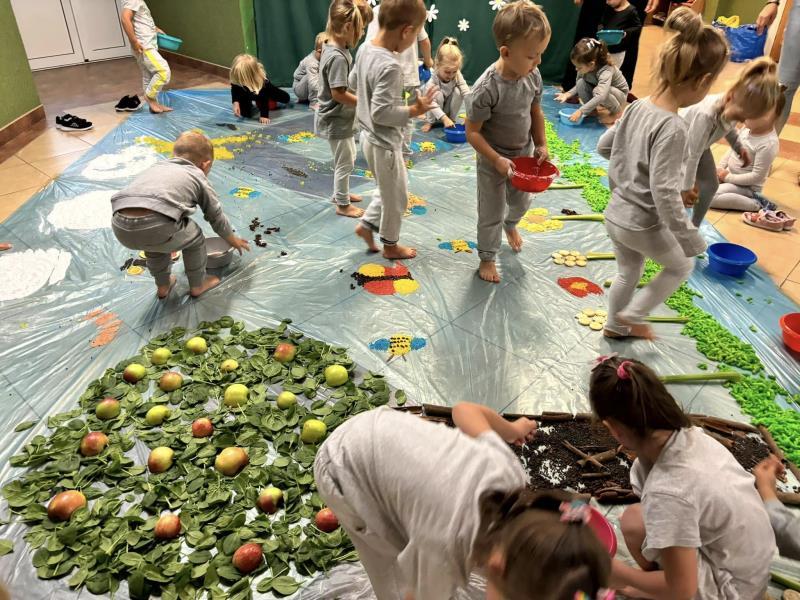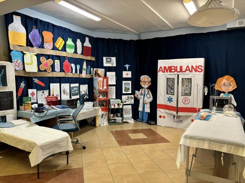 • Zmieniająca się przestrzeń – aranżacja holu przedszkolnego zgodnie z tematyką tygodniowych zajęć (np. szpital, moda, dżungla), pobudzająca ciekawość i wyobraźnię dzieci.