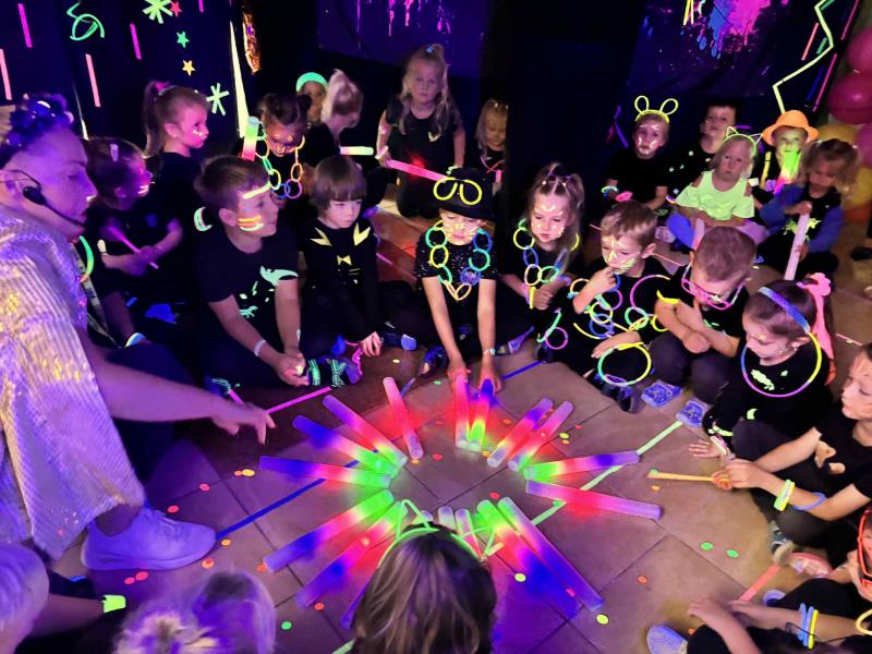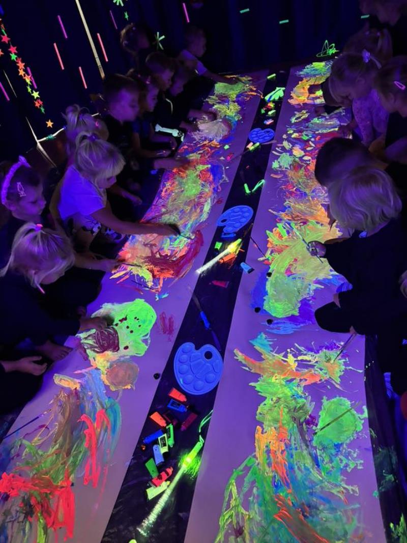 • Zajęcia z języka angielskiego realizowane w formie zabawy – poprzez taniec, gry, słuchanie historyjek i śpiewanie – umożliwiające naturalne przyswajanie języka oraz rozwijanie kompetencji komunikacyjnych wszystkich dzieci.