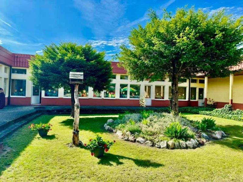 Rodziców, którzy przyprowadzają swoje pociechy cieszy fakt, że mogą one bawić się w trzech dużych ogrodach przedszkolnych wyposażonych w sprzęt do zabaw, z dala od zanieczyszczonych, hałaśliwych ulic. Budynek jest tak usytuowany, że z każdej klasy prowadzi wyjście na taras i ogród. Bardzo często zajęcia odbywają się na świeżym powietrzu, wśród zieleni. To zapewnia spokój i bezpieczeństwo naszych dzieci. Pamiętają o tym ci, którzy opuścili już mury przedszkola i później, po wielu latach właśnie tu oddają pod opiekę własne dzieci.