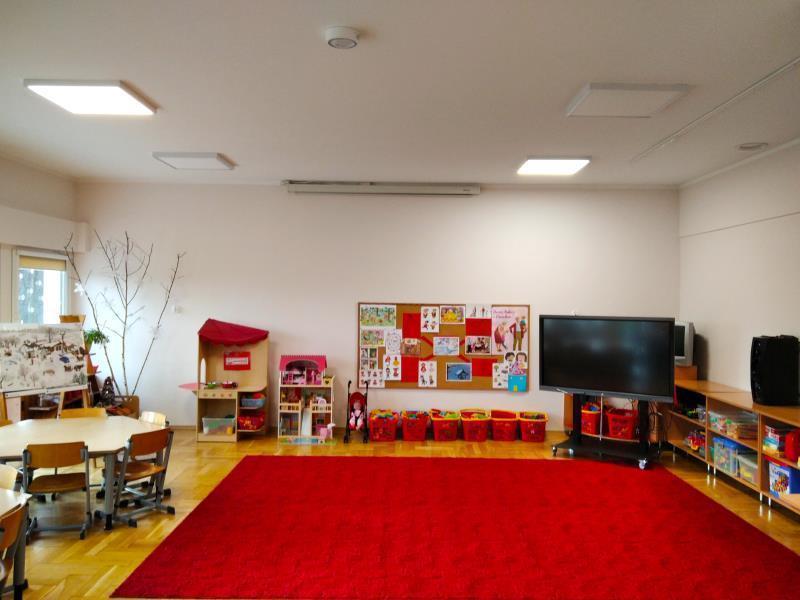 - 5 przestronnych sal bogato wyposażonych w pomoce dydaktyczne, przy każdej sali zaplecze sanitarne dla dzieci,
